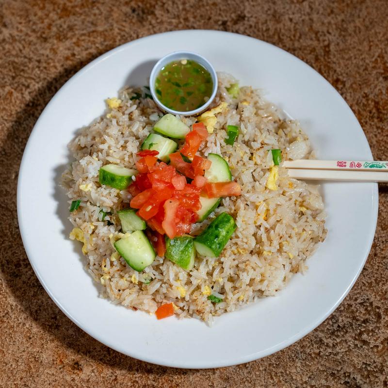 Shrimp $14.00 | Chicken $13.45 | Steak $15.25 | Veggie $11.00 | Vegan $11.00 • Served in a traditional Khmer style, with cool vegetables sprinkled atop and a thimble of fiery lime sauce on the side.
